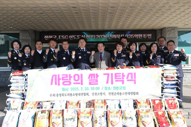 충청북도 의용소방대연합회(신임회장 강성오)는 20일 진천군청을 방문해 관내 사회복지시설에 전해달라며 백미 1,700kg(금510만원 상당)을 전달했다.
